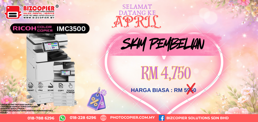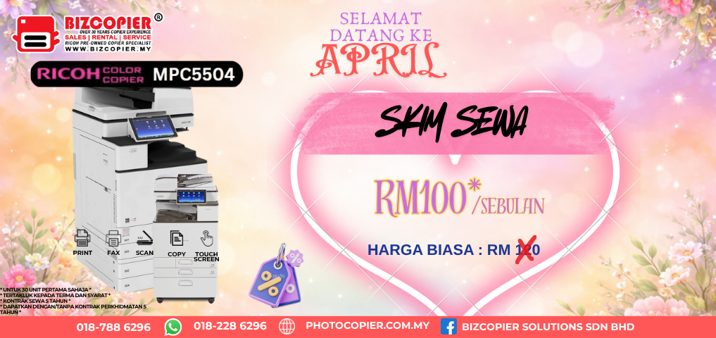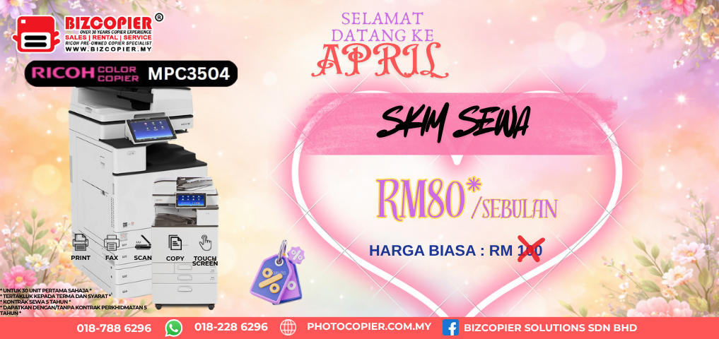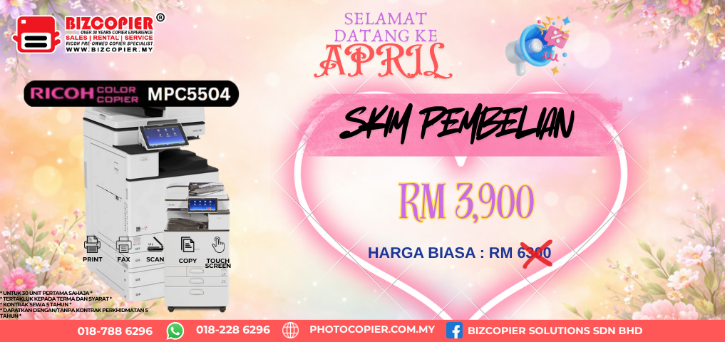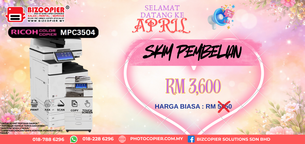 We provide rental and purchase scheme for pre-owned Ricoh photocopier machine in Klang Valley area. Go green by using pre-owned photocopier machine.